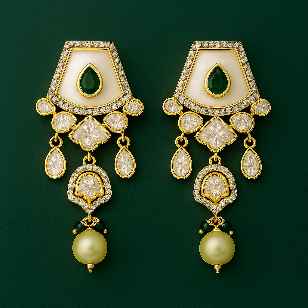 Product Name – Emerald Green Pearl Kundan Choker Set | Gold-Plated Bridal Jewellery with Earrings | Polki Necklace Set